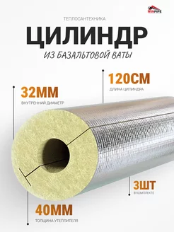 Утеплитель для труб из минваты 120см. d32мм х 40мм,3шт
