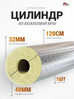 Утеплитель для труб из минваты 120см. d32мм х 40мм,1шт
