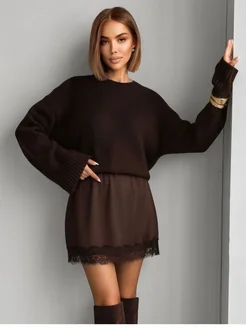 Юбка мини шелковая с кружевом