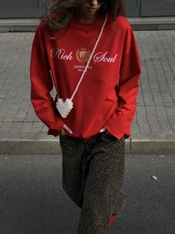 Лонгслив оверсайз красный с принтом old money