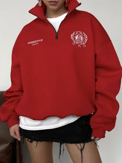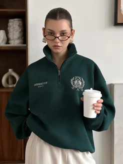 Свитшот на молнии полузамок оверсайз с вышивкой