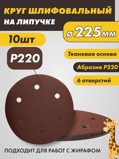 Шлифовальный диск 225мм на липучке P220 6 отверстий