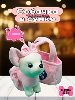 Мягкая игрушка Собачка в сумочке 20 см розовая