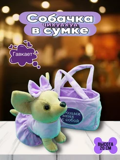 Мягкая игрушка Собачка в сумочке 20 см сиреневая