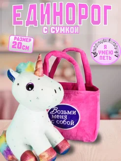 Мягкая игрушка Единорог в сумочке 20 см ярко розовая