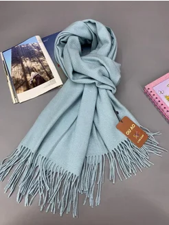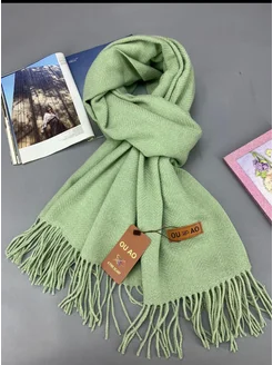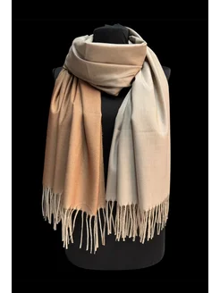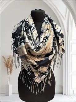 Платок тёплый кашемировый бежевый черный с абстрактным рисун