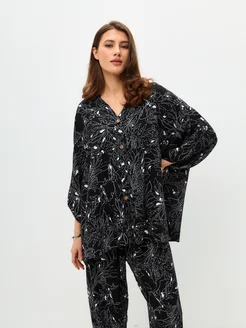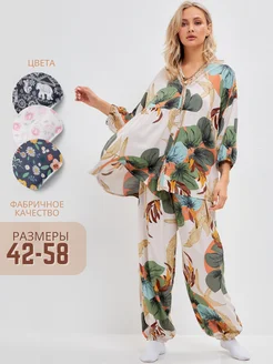 Пижама со штанами и рубашкой оверсайз домашняя одежда