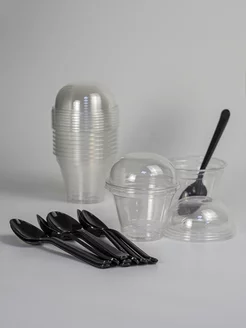 Одноразовые креманки с крышкой и ложкой 10 шт