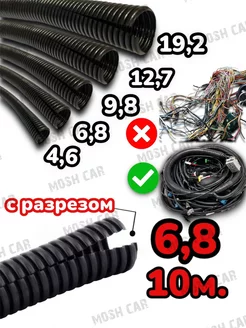 гофра для проводов автомобильная 6,8 мм с разрезом 10 метров