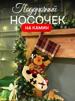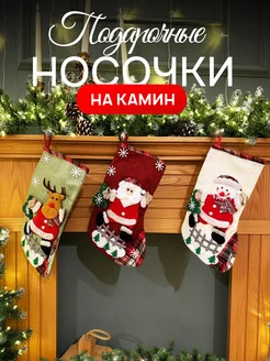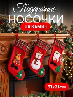 Новогодний носок для подарков на камин 3 шт 31х21 см