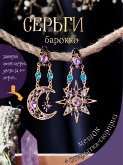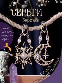 Серьги ассиметричные крупные солнце луна в стиле барокко