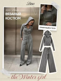 Брючный вязаный костюм спортивная двойка с зипкой на молнии
