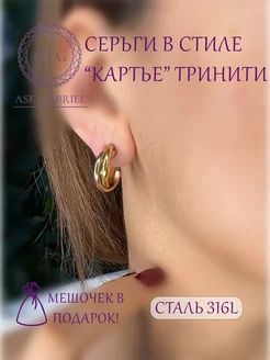 Серьги в стиле Cartier Тринити тройные медицинская сталь