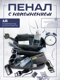 Пенал черный с наполнением канцелярией