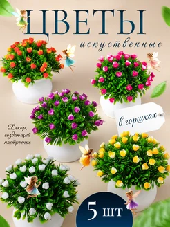 Искусственные цветы для декора комнаты в горшках 5 штук