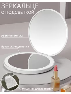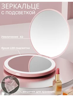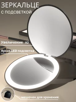 Зеркало карманное для макияжа с подсветкой и увеличением