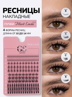 Ресницы накладные пучки микс разных форм изгиб B, С 10-14 мм