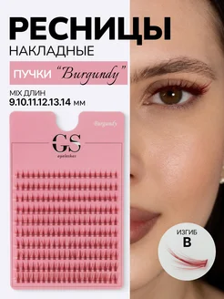 Ресницы накладные пучки бордовые изгиб B микс 9-14 мм