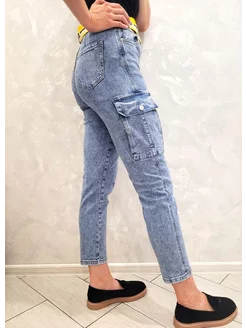Джинсы карго с высокой посадкой
