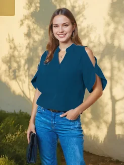 Блузка офисная с коротким рукавом