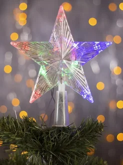 Светодиодная верхушка на ёлку Звезда прозрачная 22 см