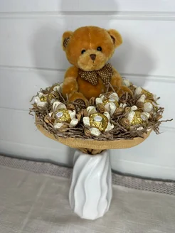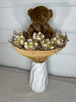 Букет с конфетами Ferrero с мягким мишкой коричневый