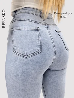 Джинсы скинни голубые с высокой посадкой зауженные стрейч