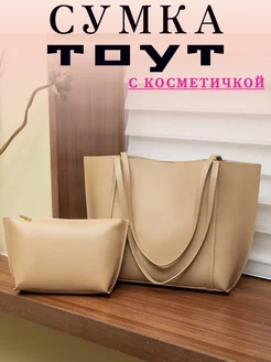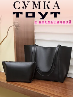 Сумка-тоут + косметичка в комплекте, эко-кожа