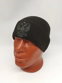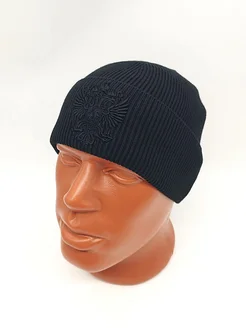 Шапка бини с отворотом Россия герб осенняя зимняя