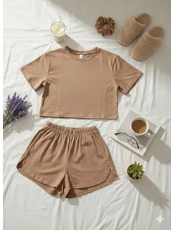 Пижама ночнушка с шортами и футболкой хлопок для дома