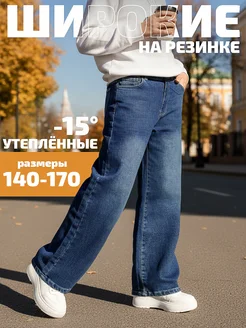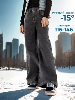 Джинсы на резинке утепленные широкие прямые в школу