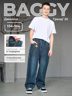Джинсы-багги утеплённые