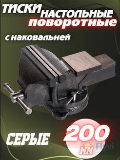 Тиски слесарные с наковальней 200 мм поворотные серые