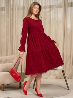 платье вельвет волан