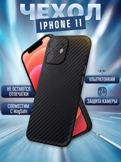 Чехол на iPhone 11 с защитой камеры карбоновый тонкий