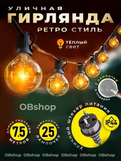 Уличная ретро гирлянда 7,5 м 25 лампочек накаливания