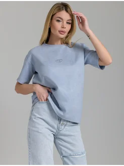 Футболка голубая с сердцем плотная