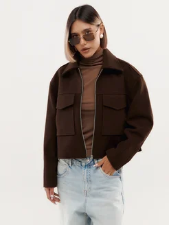 Бомбер укорочённый шерстяной коричневый
