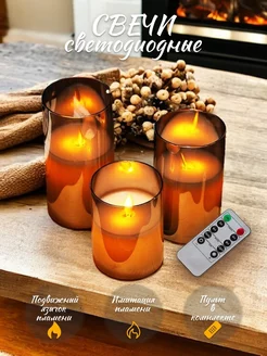 Свечи стеклянные восковые светодиодные с пультом 3шт