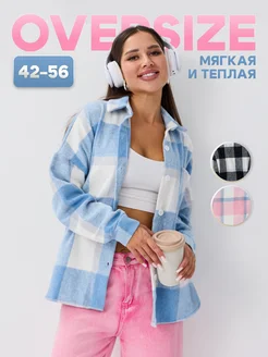 Рубашка в клетку оверсайз теплая