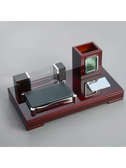 Набор настольный 4 в 1 визитница, часы, 34x17x13 см