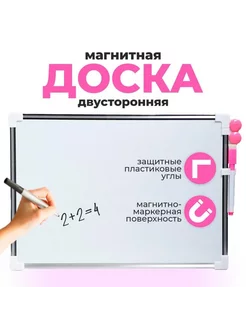 Двусторонняя магнитная доска 36х25 см с маркером и магнитами