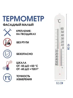 Уличный термометр градусник 40x6 см от -50 до +50град.C