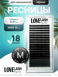 Ресницы для наращивания Черные микс 18 линий M 0.07 6-13мм