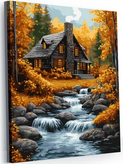 Ручей в осеннем лесу Картина по номерам на холсте 40х50 см