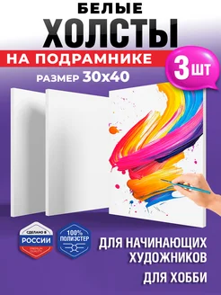 Белые холсты на подрамнике 30х40 см набор 3 шт