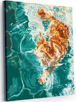 Котик в бассейне Картина по номерам на холсте 40х50 см