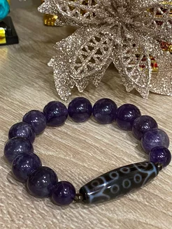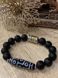 Бусина Дзи 9 глаз в браслете из агата с мантрами и барабаном