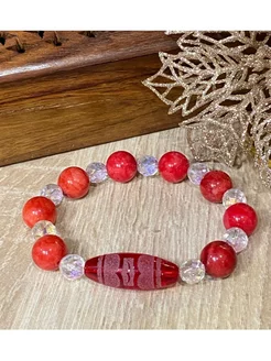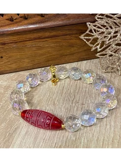 Браслет бусина Дзи "8 нектарных сосудов" хрусталь, ваджра