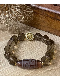 Браслет бусина Дзи "6 глаз черепаха" из раухтопаза с ваджрой
